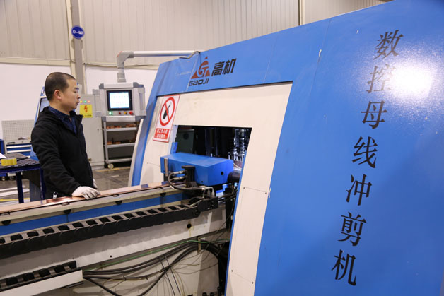 在铜排加工区,这里人数虽然不多,但是员工们热火朝天的干劲却丝毫不差,有的在操作数控母线冲剪机,有的在打磨着铜排母线,大家坚守岗位,以高昂的工作激情,力争以高标准、高质量的要求确保项目交付。