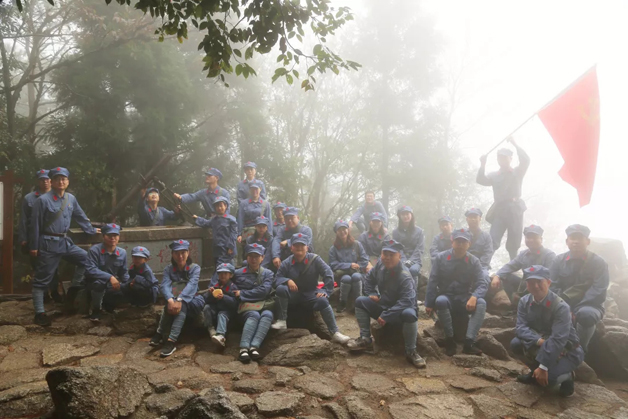 朱毛挑粮小道位于井冈山西北面黄洋界下面,原名五里横排,是当年红军从宁冈挑粮上山路线的一小段,路为羊肠小道,崎岖不平,并且经常笼罩着白茫茫的雾气。在这次红色之旅中,全体成员身穿红军服装,头戴红军帽,打着裹腿,重走当年红军百里挑粮的部分路程,大家在井冈山亲身感受到革命年代红军的艰辛,这让和平年代出生的我们对这种艰辛有更深刻的认识和体会。