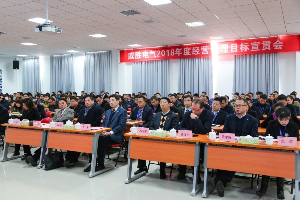 2018年经营管理目标宣贯会共三个阶段:首先,会议宣读了2018年威胜电气总裁任命、电气经营管理团队和销售负责人的人事任命。