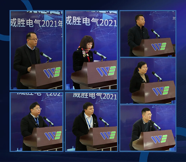 威胜电气两位BG总裁分别对各自业务领域2021年的经营规划与实现目标的决心进行了发言。智慧能源BG总裁曾辛先生提出,2021年新能源发展将再出发,以互联、互动、共享的智慧能源服务技术,为碳中和目标下的能源低碳化、电气化发展提供高友好性、高经济性的智慧能源产品与服务,以实现经营目标和业务价值;智能配网BG总裁冯喜军先生从市场开拓、运营管理、产业升级三方阐述了2021年经营思路:锁定六大重点市场,以规模推动效益;提升精益生产能力,以管理优化质量;创新智能配电方案,以升级带动发展。