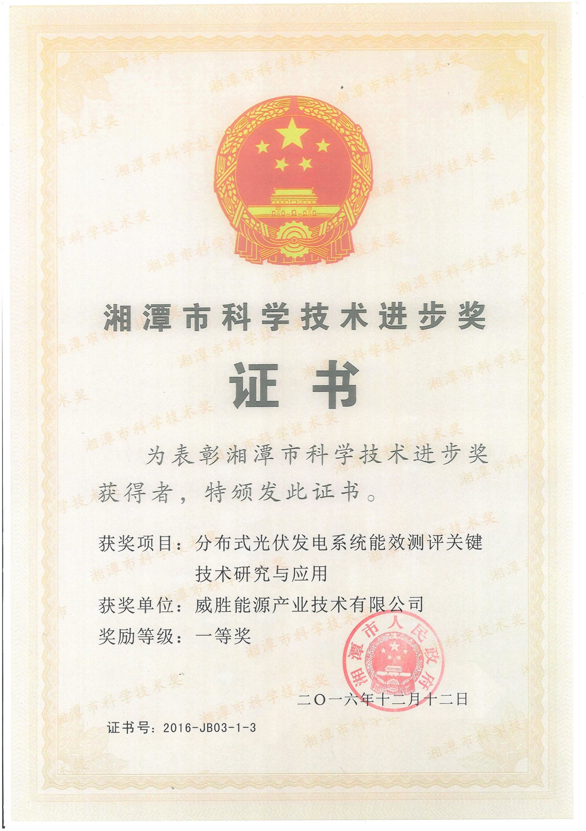 湘潭市科学技术进步奖-分布式光伏