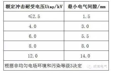 ——小于下表规定值时,冲击电压耐受试验应按相应试验要求执行;