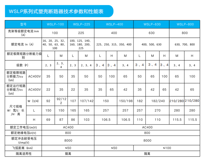 WSLP系列断路器适用于配电和电动机保护场合州也适用干消防场合,断路器具有过截、短路、欠压保护等功能,能保护线路和电游设备不受损坏。