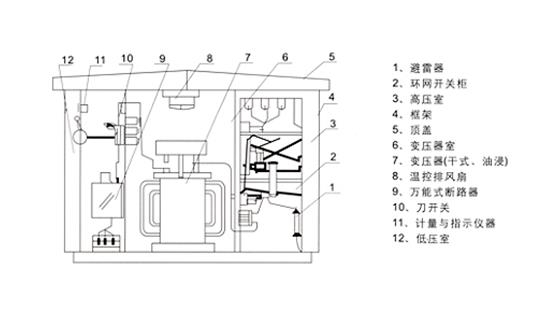 YBW-12/0.4-□ 高低压预装式变电站是将高压电器设备、变压器、低压电器设备和其他附属件组合成的紧凑型成套配电装置。广泛适用于城市高层建筑、城乡建筑、居民小区、中小型工矿企业及需要临时施工用电等场所,作为配电系统中接受和分配电能用。