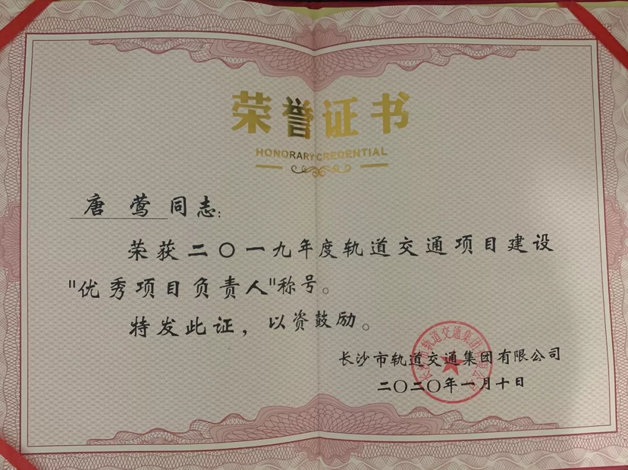 感谢长沙市轨道交通集团对我司的高度认可
