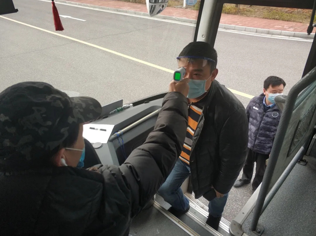 上车前体温检测,确保合格佩戴口罩,
