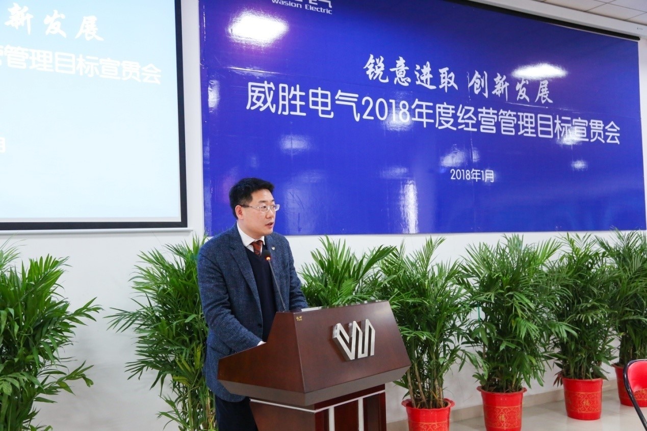 2018年战斗的号角已经吹响,让我们在集团战略的正确指引下,在电气董事会的正确领导下,坚定信心、忠诚目标、锐意进取、创新发展,为实现2018年经营管理目标而不懈努力!为实现电气的百亿目标而不懈奋斗!