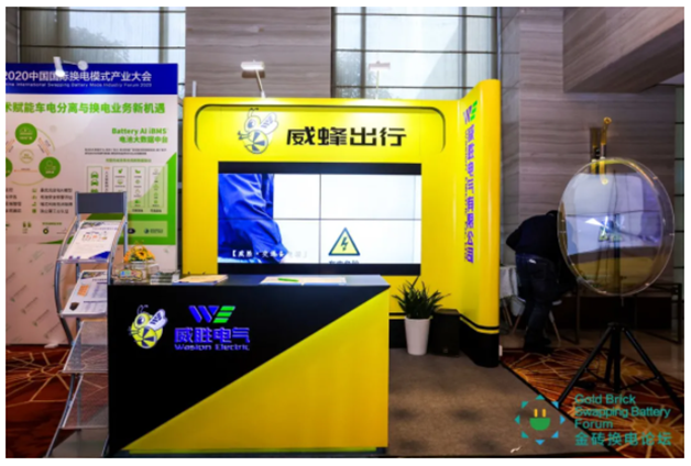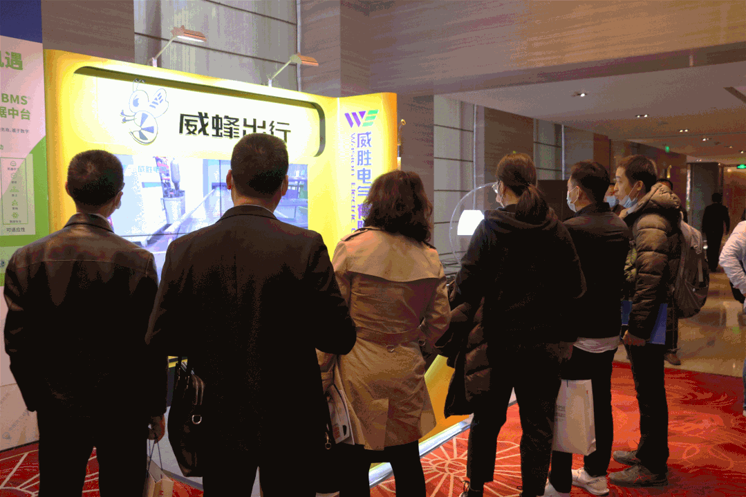 威蜂换电\出行高度重视此次盛会,此次参展,我们独出心裁的在标展中创造了全新的展台设计,并携黑科技——3D全息投影仪参展,搭配电子大屏充分展示我司企业介绍、行业前沿的新一代智能充换电柜、智能充换电储电解决方案等,别具一格的展台,充分彰显了威蜂出行这个充换电行业新秀的创新和品牌实力,超强的吸睛能力,引来了众多领导、嘉宾及客户的莅临交流。