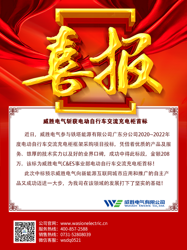 此次中标预示威胜电气向新能源互联网城市应用和推广的自主产品又成功迈进一大步,为我司在该领域的发展打下了坚实的基础!