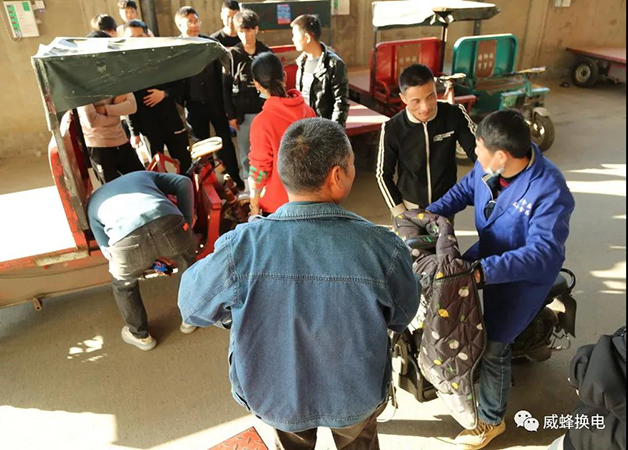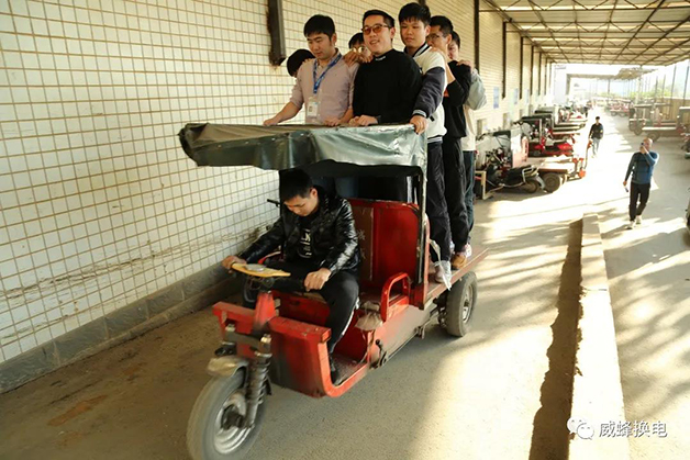 在现场,威蜂技术人员全面测试了改造后的换电电三轮,测试其运转、负载、及爬坡能力!测试成果均达到了预期。下一步,威蜂还将继续积极响应市场需求,深入对传统两轮/三轮电动车的换电改造升级的探索与应用,助力换电技术在更多行业、更多场景的应用。