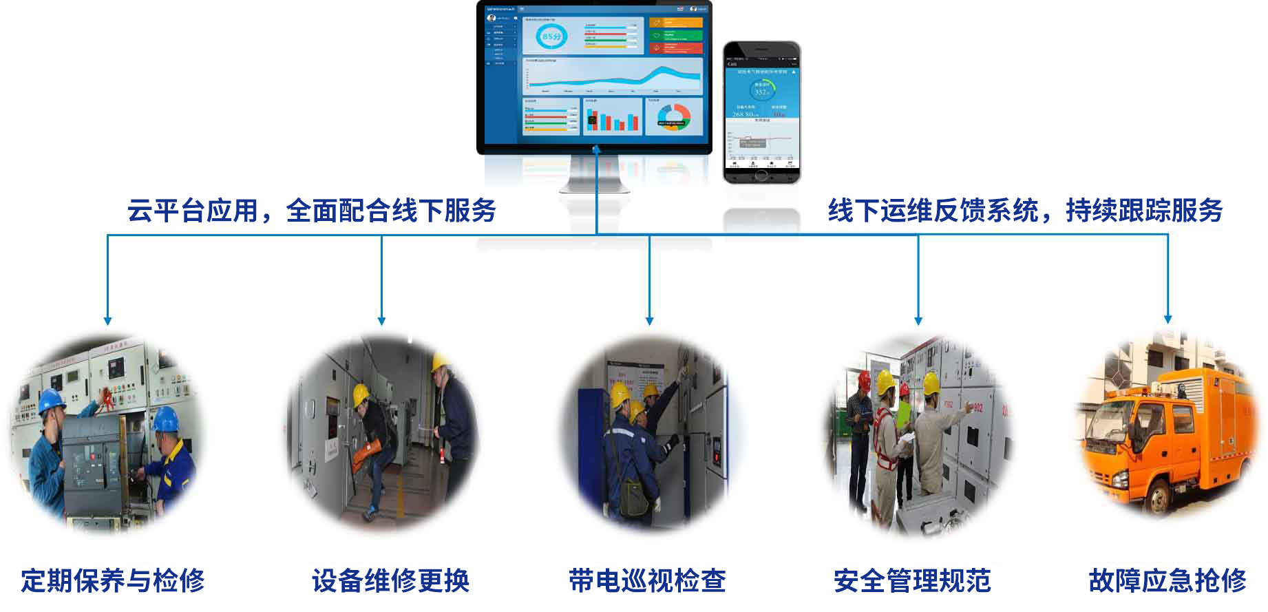 结合大数据的应用,定期针对用户的配电及能效管理进行总结与分析,并出具相关的智能配电与能效月度、季度、年度分析报告。报告的主要内容为:配电设施与用能的基本概况、能源消费结构与消费特性、主要设备运行分析、用电报装、相关问题及建议等。